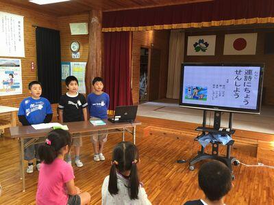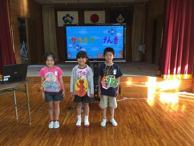 1年生と4年生が日頃の学習の成果を発表しました。1年生は「サラダで元気」の朗読を、4年生は「連歌、回文」について発表しました。どちらの学年も日頃の学習の成果をしっかり発揮できていました。