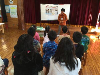 都城消防署から4名の隊員の方をお招きして、火災時の避難訓練について学習しました。火事の恐ろしさや消化器の使い方について教えてくださいました。