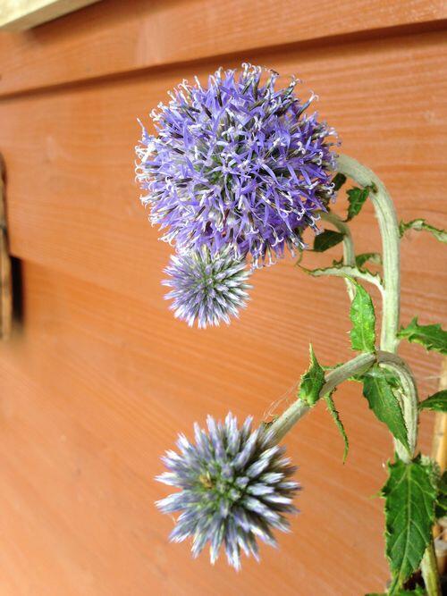 8月25日(月)・・・ヒゴタイの花色づく校庭のヒゴタイほ花が青く色づきました。とてもとてもきれいな色です。
