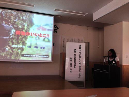 社会教育福祉総合研修会での発表・・・8月24日(日)に標記の発表会が西岳公民館で9時から開催されました。その中で本校のAさんが3年前の噴火のこと、そして今の御池小の取組について発表しました。すばらしい発表でした。