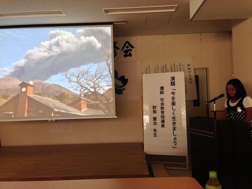社会教育福祉総合研修会での発表・・・8月24日(日)に標記の発表会が西岳公民館で9時から開催されました。その中で本校のAさんが3年前の噴火のこと、そして今の御池小の取組について発表しました。すばらしい発表でした。