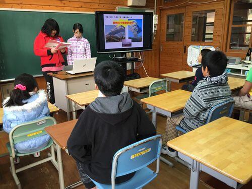 校区に住む鹿について総合的な学習の時間を中心に学習している3校による、テレビ会議システムを使っての発表会が行われました。遠く遠く離れた学校とのテレビ会議でしたが、それぞれのプレゼン資料が画面上で説明されました。