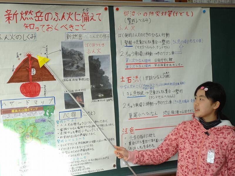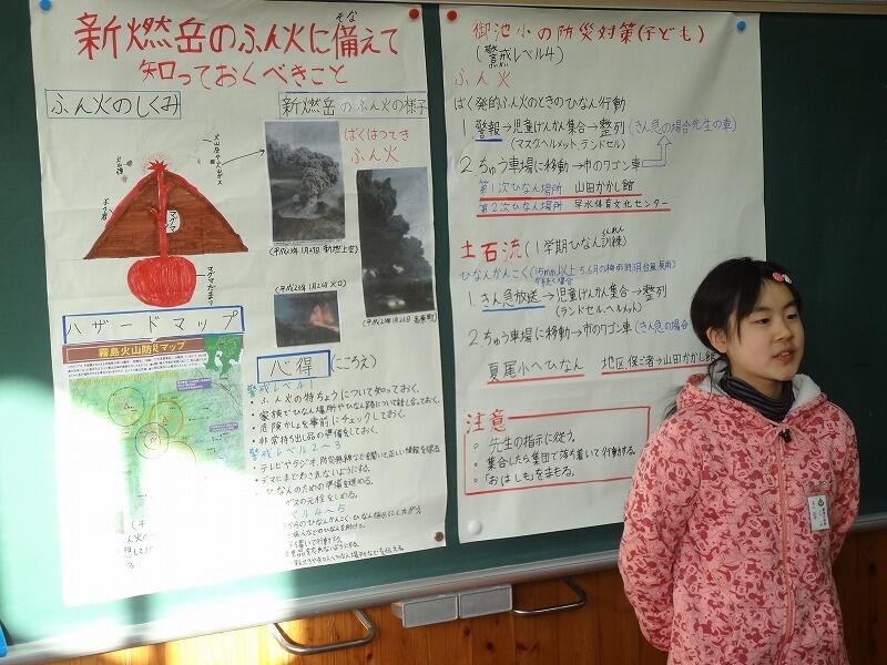 〇 毎年、新燃岳の噴火の指導を行っていますが、今回は6年生が理科の学習と関連させて 「新燃岳噴火にそなえて私たちが知っておくこと」と題して発表をしました。