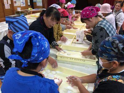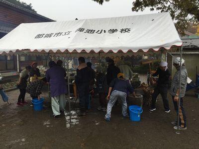 たくさんの保護者や地域の方々の参加の下、もちつきが行われました。あいにくの雨でしたが、テントを張って行いました。前日の準備から後片付けまで、いろいろなことを保護者や地域の方々が協力してくださました。