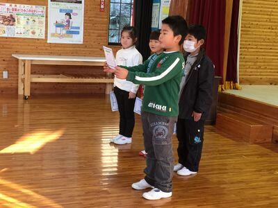 今日から3学期、天気も快晴で一人一人の顔にやる気がみなぎっていました。朝は教頭先生から1月に暗唱する名文について説明がありました。その後の始業式では、全員が3学期の目標を発表しました。