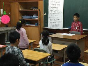 御池小学校は言語活動の育成の一環として、朝の1分間スピーチに取り組んでいます。全校で行う朝の会の中で行っています。スピーチが終わると、全員が感想を述べます。本校の伝統の取組です。