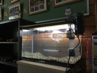 御池小学校の玄関の水槽にメダカが10匹届きました。この日のために、水を作ったり、砂利を用意したりと5年生の3人が準備してくれました。御池小学校は標高530mにある学校で少し気温が低いのでヒーターを使って飼育します。
