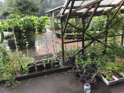 今年の夏は前半に雨が多かったのと、標高530mに学校が位置することもあり、春に植えた種が今になって成長し、緑のカーテンをつくってくれました。