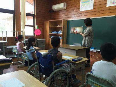 本日は、命について考える日でした。全校で集まって考えました。「かぜのでんわ」という本の読み聞かせをもとに命について考えました。