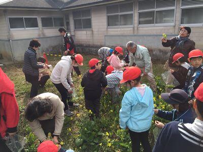 夏尾小学校を会場に今年度の交流学習が行われました。午前中は、地域の専門家の方々をお招きして野草教室が行われました。校庭に咲く食べられる野草をみんなで摘み取って調理して食べました。春の香りがしてとてもおいしかったです。