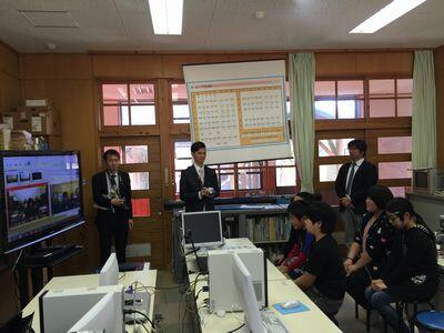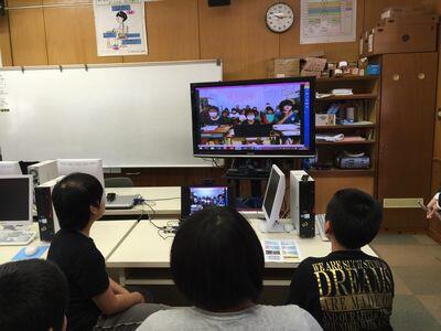 校区に住む鹿について総合的な学習の時間を中心に学習している3校による、テレビ会議システムを使っての発表会が行われました。遠く遠く離れた学校とのテレビ会議でしたが、それぞれのプレゼン資料が画面上で説明されました。