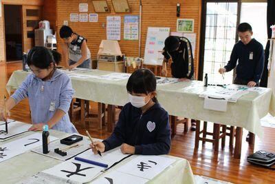 11月3日に行われる地区の文化祭に向けて真剣に習字に取り組みました。一字一字精神を集中させて、ていねいに書きました。