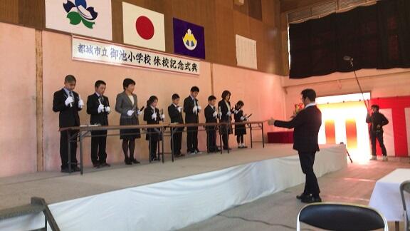 快晴の空の下、御池小学校の休校式典が盛会に行われました。当日は200名を超す、たくさんの方々の参加もありその様子はテレビでも放映されました。