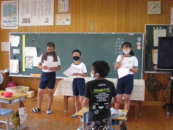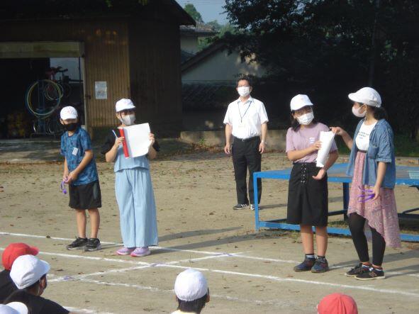 式では、3年生、6年生の代表児童が、1学期の振り返りや2学期以降さらにがんばることを発表してくれました。
