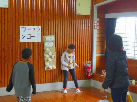 勝つのはいつもネコチーム。何でだろうと考える子どもたち。どうやら影の伸び方と関係しているようだと考えました。この経験を生かして影はどういったところにできるのか、これから調べていきます。