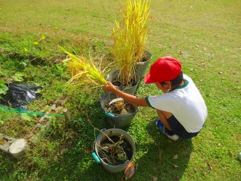 例年、JA都城梅北支店近くの田んぼで、JA都城梅北支店の方々や地区青年部の方々のご協力をいただき、田植え、稲刈りの体験活動をさせていただいています。