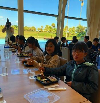 子どもたちは、白鳥山への登山を終え、昼食を食べたと連絡が入りました。天候にも恵まれ、すばらしい活動ができているようです。