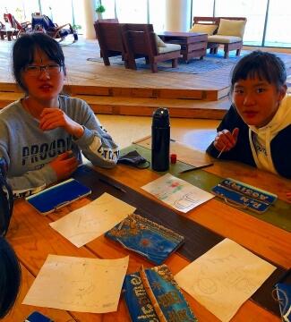 星空観察を終え、それぞれ1日を振り返る時間です。写真は班長会議の様子です。