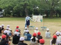 そして、運動場では、全体指導として、不審者対応時のキーワード「お・は・し・も」や「いか・の・お・す・し」などを教えていただきました。