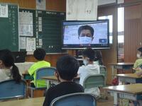 オンライン始業式は、これまでのように、1~3年生は大型テレビを使って、4年生以上は一人一台端末を使って行いました。