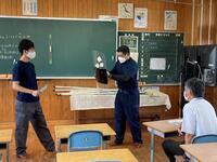 本日、都城警察署の協力を得ながら、不審者対応の避難訓練を行いました。夏休み中には、職員研修として、教職員の動きを確認していましたが、今日は、子どもたちも参加しての訓練となりました。