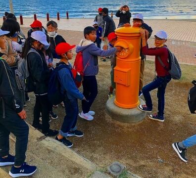 夕食の時間まで青島散策。青島の名所「幸せの黄色いポスト」に手紙を投函しました。