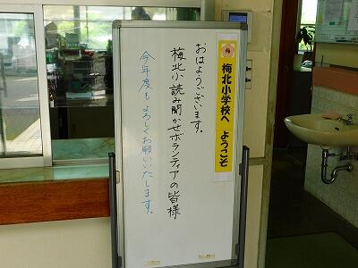 学校の正門入って正面に、梅北の由来がかかれた看板を設置していただきました。