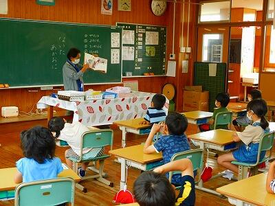 国語の時間に、図書館サポーターの修行先生から読み聞かせをしていただきました。「きつねのホイティ」という絵本でした。読んだことがある子もいたようですが、修行先生の語り口に全員釘付けでした。教科書で学習することも大切ですが、ゆっくり読み聞かせを聞いたり、本を読んだりする時間も大事にしたいなと感じました。