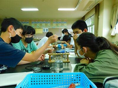 5年生は、メダカの卵を観察しました。双眼実体顕微鏡でメダカの受精卵を観察すると、小さな泡のようなものが2、3粒ありました。「毛みたいなものが生えている!」「つぶつぶがあるよ」など、顕微鏡で観察しなくてはわからないことがたくさん見えてきました。今後、この卵がどのように成長していくのか観察していきます。