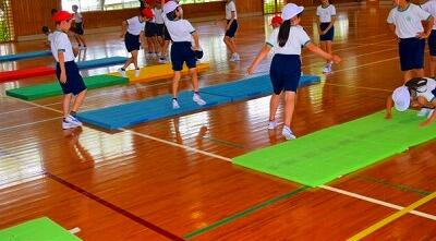 マット運動の様子です。友達と協力してマットをさっと準備することができ、すばらしかったです。前転や後転を練習しました。後転で両手をついてスムーズに回ることがなかなか難しいようです。練習をつづけていきたいと思います。