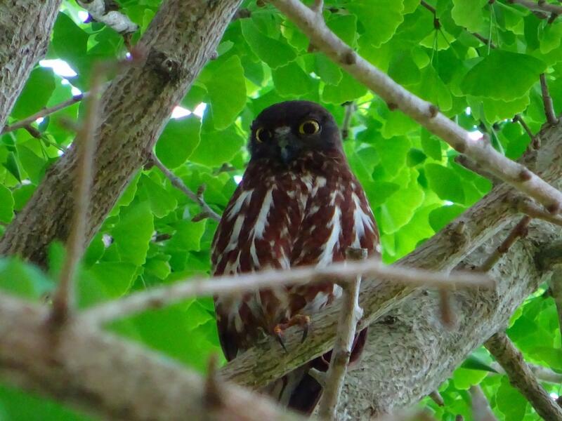 梅北小学校の人気者アオバズクの「梅ちゃん」が今年も飛来しました。