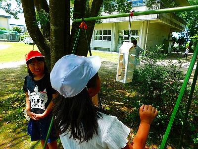 よーく目を凝らして見ないと見つからない梅ちゃん。一生懸命上を見上げて梅ちゃんを探す1年生でした。さて、梅ちゃんは見つかったかな??