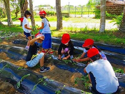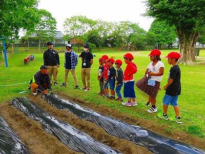 2年生がサツマイモの苗を植えました。分散登校で、昨日と本日の2日に分けての植え付けでした。JAの方の協力をいただきながら、自分たちでサツマイモの苗を植えました。秋に大きなサツマイモが収穫できるといいですね。
