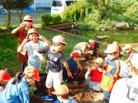 2年生は活動が大好き。笑顔いっぱいで冬野菜の苗を植えていました。