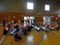 4/23(水)の朝、梅北小学校の体育館に全児童が集まりました。その理由は、5/24(土)に予定されている大運動会の結団式を行うためでした。
