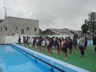 担任からプールでの学習を真剣に行うことやバディで友達と自分の安全を確認することなどについて説明がありました。