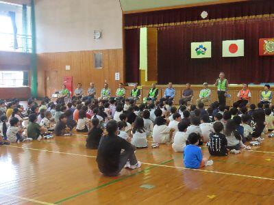 「横断歩道を渡るときには、しっかりと手をあげて意思表示をして」「あいさつをしてくれると嬉しいです。」「雨の日は、水路の溝は危険だから近寄らないで」「(40年前の死亡事故について話された後)おうちの人がとても悲しまれていたよ。みんなも気をつけて。」「○○のお店の近くの交差点は、ものすごいスピードで車が走っているし、運転している人も片手でパンを食べたり、スマホを見ている人もいるから、自分たちが気をつけないといけませんよ。」など、普段見守りをしながら感じられていること、伝えたいことを話してくださいました。