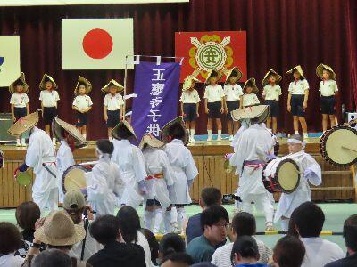 そのあとは、各地区の伝統芸能等の発表でした。今年度のトップは、正応寺地区の大太鼓踊りでした。