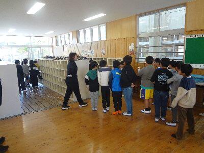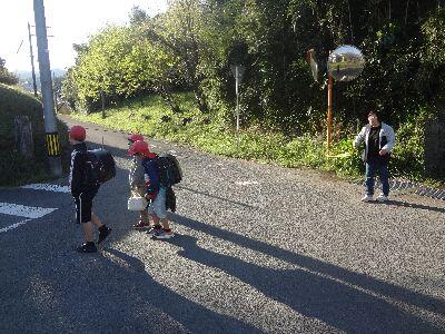 見守り隊の方が来られて、児童と朝のあいさつを交わしてくださいました。だいぶ寒くなってきてちょっと元気がなさそうな子どもたちですが、あいさつは元気よくできていました。