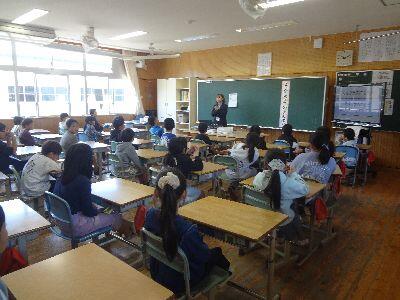 図書館サポーターの先生や理科専科の先生にも関わった児童の学級で挨拶をしてもらいました。