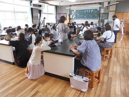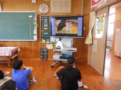 見ている方は、こんな感じです。これは1年生の教室ですが、とても立派な姿勢で聞いて言いました。1学期の成長をとても感じました。