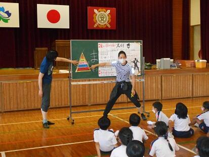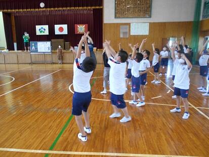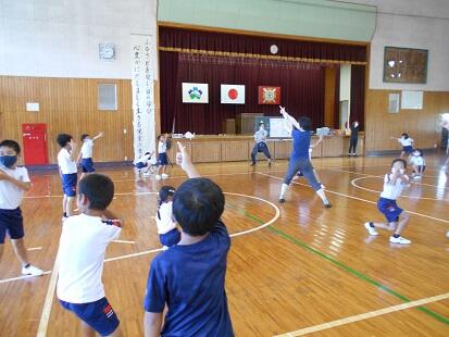 今日は「んまつーポス」の方が来られて、3年生に創作ダンスの指導をしていただきました。