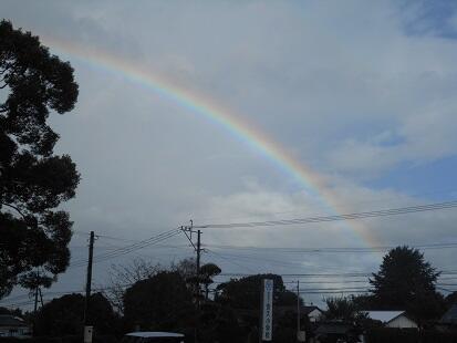 今朝は、本校からこんなくっきりした虹が見えました。今日一日、いいことがたくさんありそうな予感がしました♪