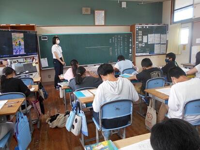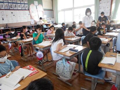 4時間目に、5年1組で、教育実習生の学生の方の授業がありました。