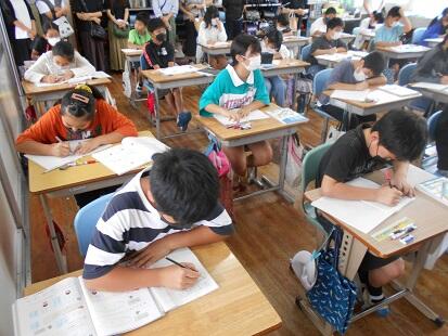 写真は4年生です。熱心に解いて、たくさん丸を付けていて、達成感のある表情が印象的でした。