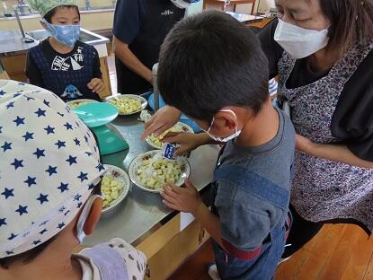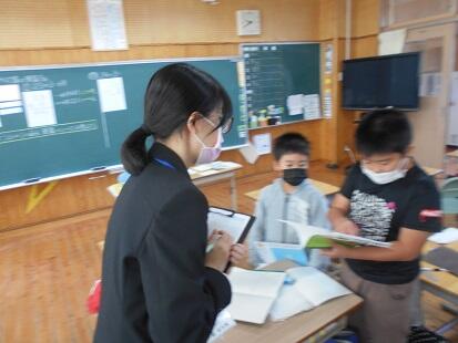テーブルでは、担任が数名の児童に、個別指導をしていました。