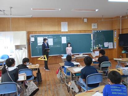 初任の職員が他の職員の授業を見て学ぶ「模範授業」が6年生の教室でありました。
