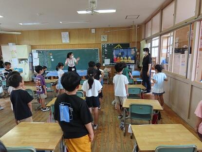 外国語は、普段は3年生から上の学年が行いますが、今日は、ALTの先生の指導の下、低学年が英語活動を行いました!