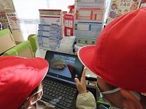 それぞれの場所で、説明を受けて、代表の児童がタブレットで写真を撮っていました。