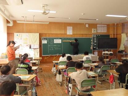 今日は教育実習で本校で学んでいる、南九州大学の学生による研究授業「算数」がありました。